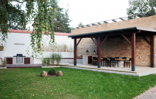Nejen interiéru domu se dostalo zasloužené péče, k rekonstrukci se vázala také kompletní úprava zahrady včetně pergoly, venkovní kuchyně a sezení.