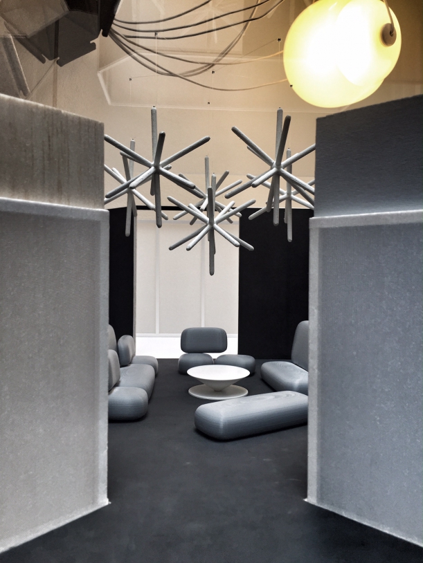 Cílem instalace je zároveň ukázat svítidla, které navrhla sama Lucie Koldová – představí tu hned dvě novinky. „Svítidla použitá v instalaci ideálně kombinují měď, sklo a dřevo. Zároveň jdou až k samé hranici toho, co je technicky možné,“ říká Dick Spierenburg, kreativní ředitel veletrhu IMM Cologne.