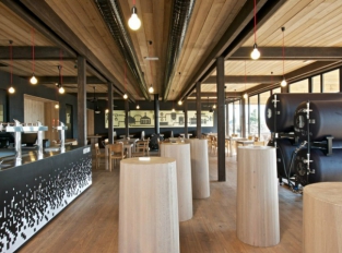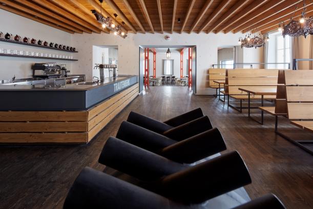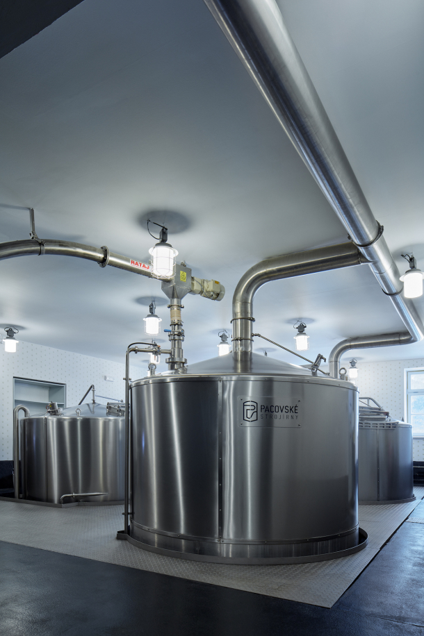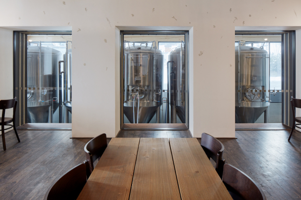 Pivovar dokáže uvařit až deset tisíc hektolitrů piva ročně. U varen objevíte několik detailů, které dokazují, že si architekti s návrhem vyhráli. Na stěny v pivovarském zázemí například obtiskli větve a šišky, které kopírují logo pivovaru. Branding dostal na starost ateliér Dynamo design, který pro chatu vytvořil také jednotný informační systém.