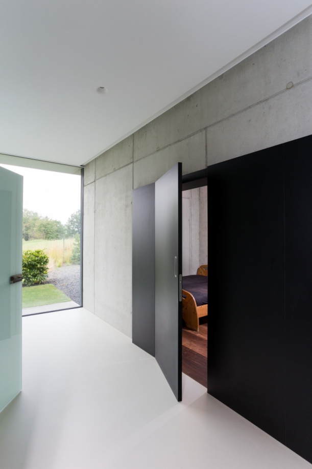 Z ložnice si mohou majitelé užívat výhled do zeleně na terasu, v níž je zasazený živý strom. Také ložnice leží v samém centru domu. Je dimenzovaná tak, aby v budoucnu mohla případně sloužit jako golfový trenažér.