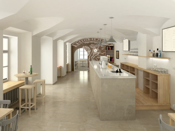 Architekti byli přizváni už k výběru vhodného objektu v centru Prahy, kde měla skupina investorů v plánu otevřít kavárnu, bistro a bar. Zadání nebylo ještě přesně formulované a dotvářelo se přímo pro vybrané místo. „Program měl zatím jen hrubé obrysy, takže jsme dostali volnou ruku ke zpracování dispozičního řešení jednotlivých prostor i celého objektu. Tím, že nás zadavatel na začátku neomezil přesnými požadavky, získal možná projekt kvality, které by při striktním zadání neměl. Myslím, že to byl chytrý tah, a jsme za tu příležitost rádi. Další kroky už samozřejmě probíhaly formou intenzivního dialogu. Komunikace s investorem a vzájemné sdílení nápadů nás obohacuje a baví,“ vypráví o projektu Mikuláš.
