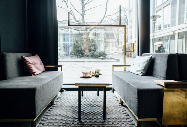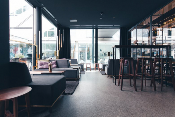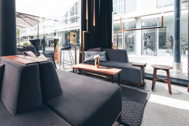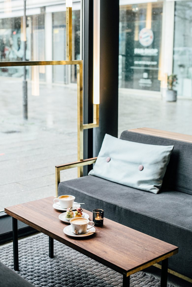 Při posezení u dobrého drinku mohou hosté pozorovat ruch velkoměsta skrz veliká okna a užívat si nostalgické pohodlí uvnitř Herzog baru. Když počasí přeje, mohou využít také venkovní terasy.