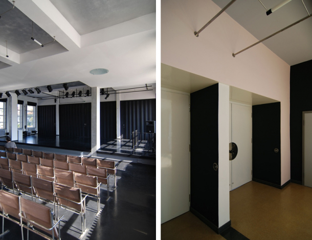 Budova školy byla ztělesněním principů, které sama zastávala. Navržena byla jako tzv. Gesamtkunstwerk, komplexní dílo, kde všechny elementy navzájem fungují tak, aby společně vytvořily dokonalý výsledek. Veškeré vybavení budovy, nábytek i osvětlení bylo navrženo studenty školy. Budova tak byla výkladní skříní tvorby studentů a přístupu školy k architektuře a designu. Celá škola je vyvedená ve střídmé, bílo-černo-šedé paletě, do které byly pečlivě vloženy kontrastní barevné plochy. Veškeré prvky spolu dokonale ladí a dohromady tvoří oslňující dílo.