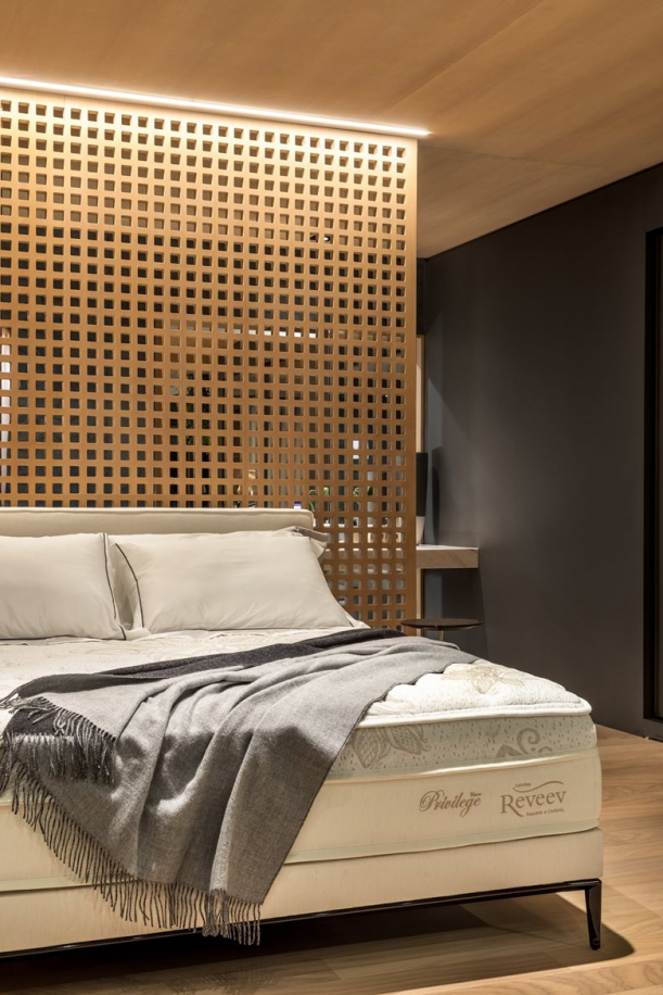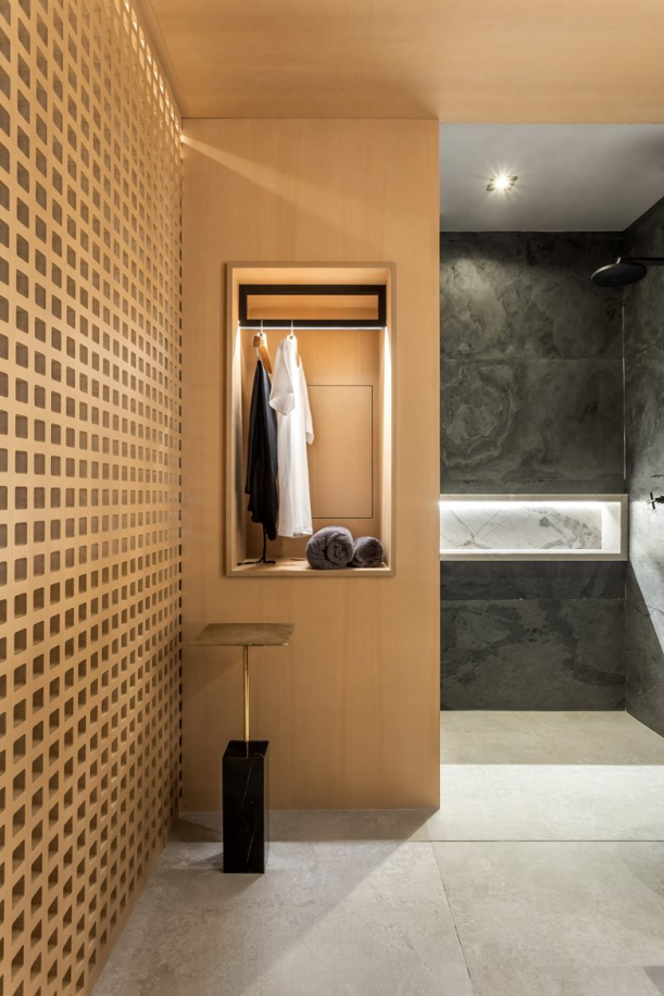 Interiéru vévodí neutrální barvy a materiály, zejména mramor a dřevo. Najdete tu nábytek od brazilských návrhářů, jako je Jader Almeida, či umělecká díla od Gabriela Wickbolda. V podkroví není nic navíc, žádné rušivé elementy. Pouze prvky nezbytné pro běžné používání. „Jde o podkroví pro život. Mělo by přinášet pohodlí skrze smysly,“ říkají architekti.