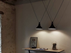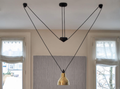 Závěsná svítidla N°328 jsou specifická systémem pohyblivého zavěšení down-up, kdy je možné se svítidlem pohybovat nahoru a dolu za pomoci promyšleného systému využívajícím protizávaží.