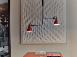 Nástěnné lampy N°303 a N°303 Double z kolekce Lampe Gras se vyznačují delší dvojitě lomenou nožkou s jedním otočným kloubem. Lampa N°303 má 1 stínidlo, lampa N°303 Double 2 stínidla.