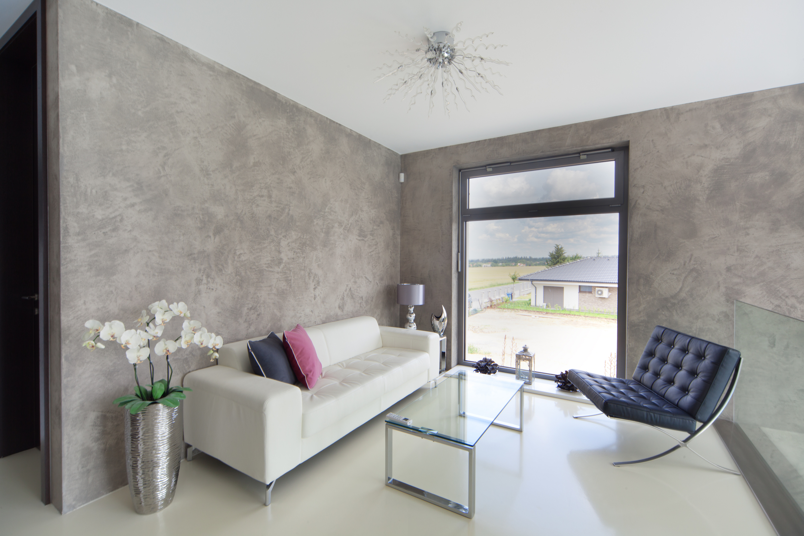 Příklad užití epoxidové stěrky Betonepox v obývacím pokoji rodinného domu.