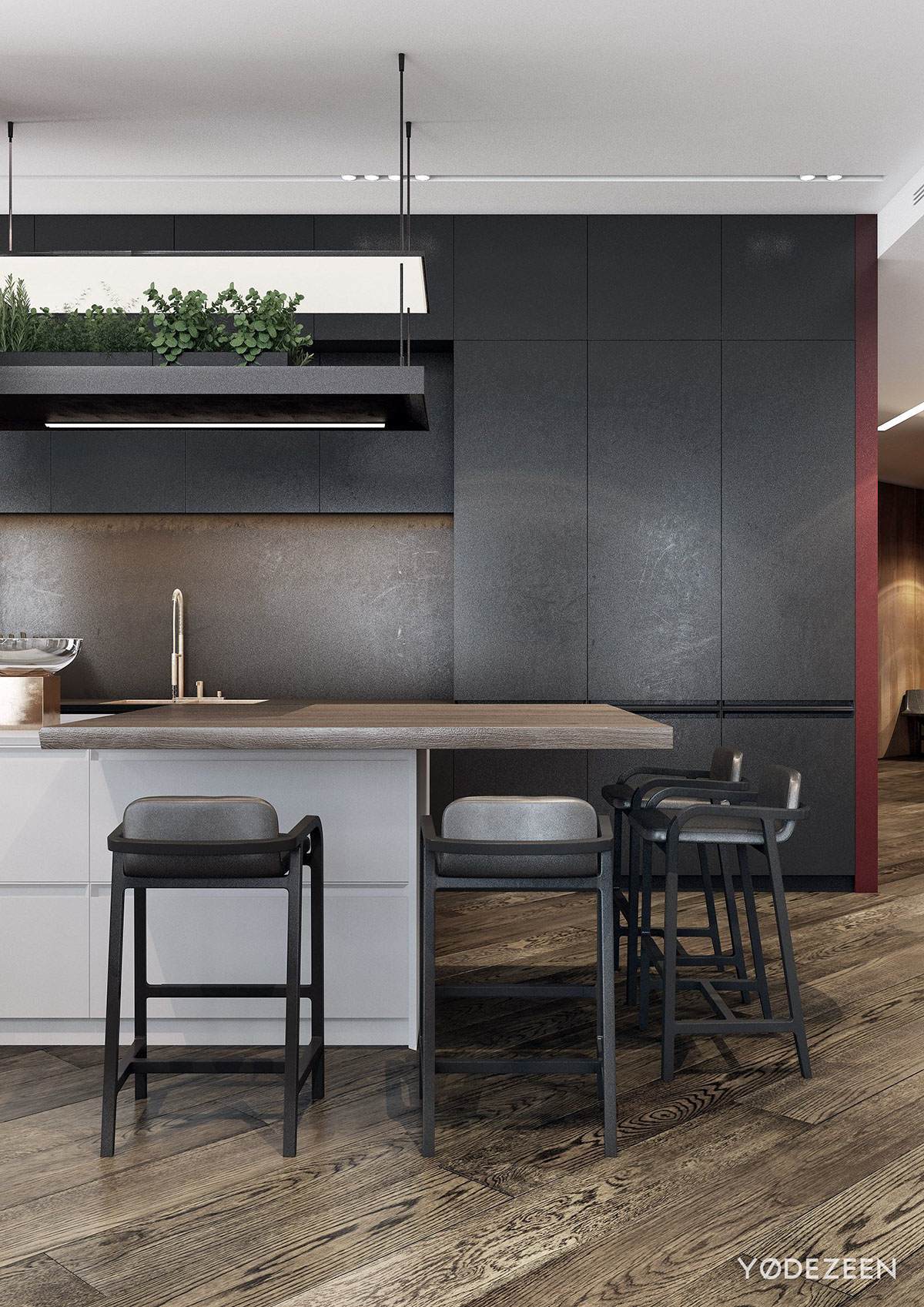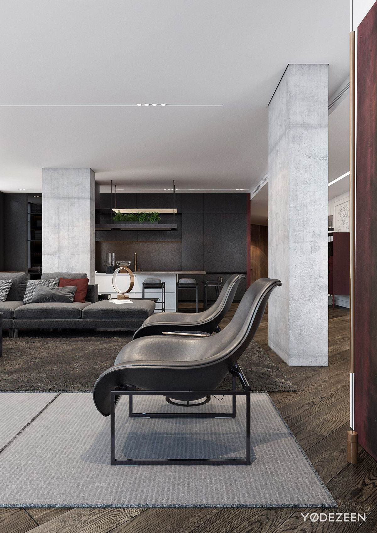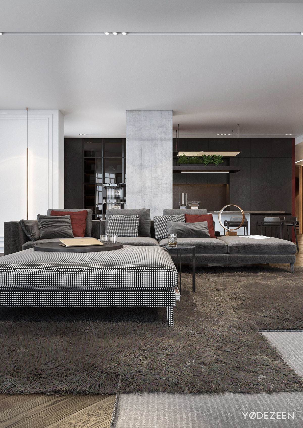Tento neobyčejný byt kombinuje moderní prvky s klasickou a elegantní výzdobou. Dominují zde různé stupně šedé barvy, které jsou však doplněny o barevné akcenty a složité detaily, které celý být nevšedně oživují. Luxusní byt byl navržen studiem YØ DEZEEN pro mladou rodinu, která se nebude bát byt v průběhu let upravovat.