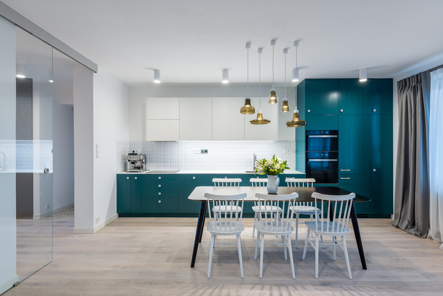 Moderní Provence v paneláku? Proč ne. Stačilo několik stavebních zásahů a tmavý byt se proměnil ve světlý prostor, kde zcestovalí majitelé rádi stráví zasloužený důchod. Originální šmrnc mu dodává tyrkysová barva, která prochází celým bytem. Společně s odstíny běleného dřeva na podlaze vytváří příjemnou přímořskou atmosféru. Netradiční tyrkysová sluší i kuchyňské lince.