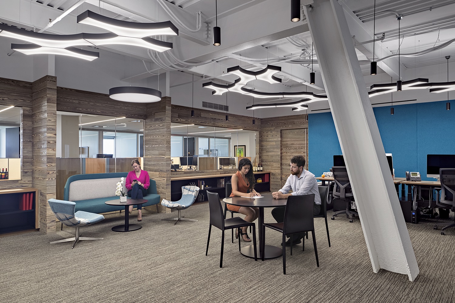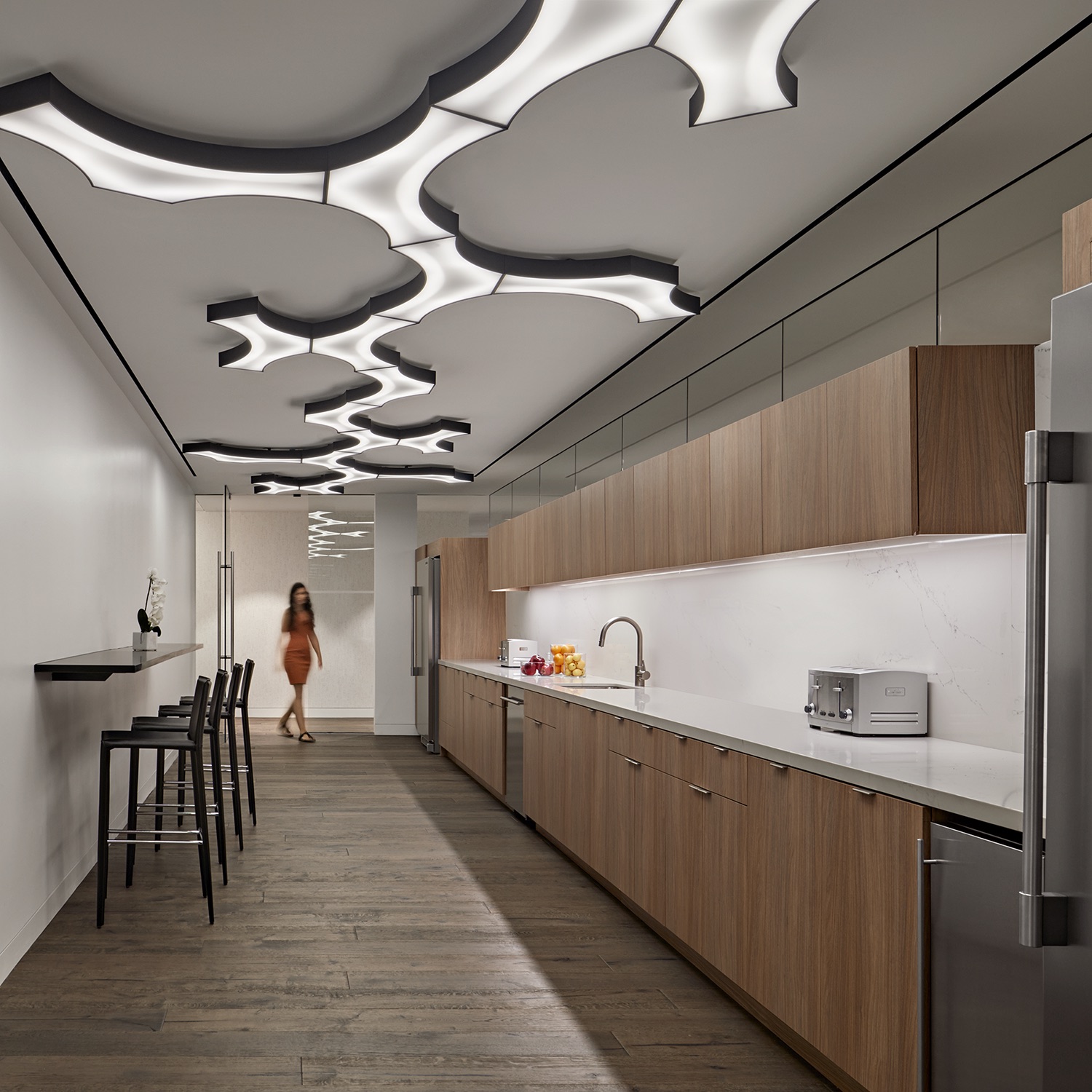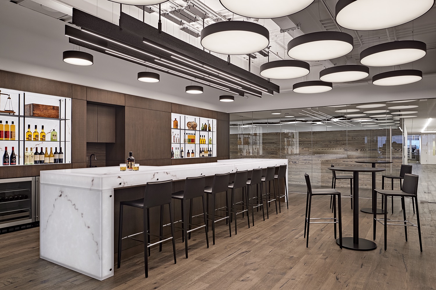 Čistý interiér ve Spojených státech amerických, doplněný o světla HUGE a MILA.