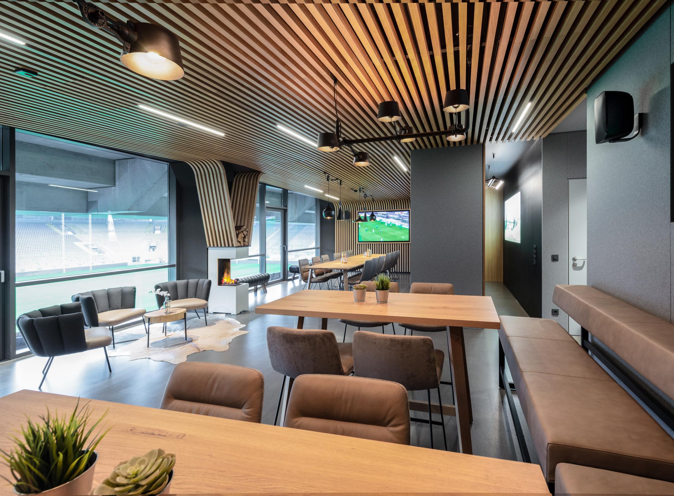 TagyNěmec ký klub ALM LOGE ARMINIA BIELEFELD navrhnutý architekty JONEK+DRESSLER s nábytkem KFF.