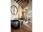 Koupelna v butikovém hotelu Monteverdi, kde je radost relaxovat, je součástí středověké toskánské osady Val d'Orcia ve střední Itálii. Tato kouzelná vesnička se nachází na seznamu světového dědictví UNESCO.