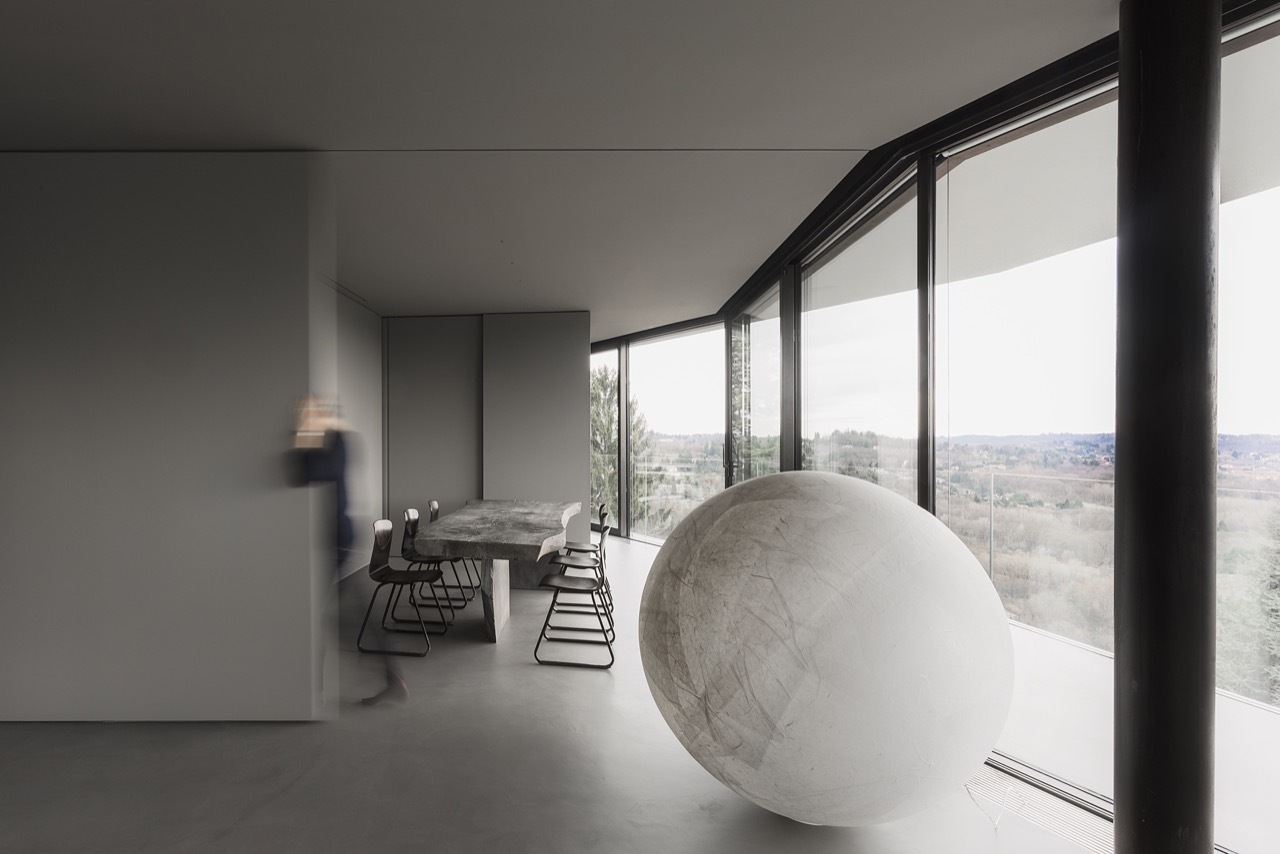 Vysoko v kopci v provincii Varese se nachází tento neobyčejný dům s výhledem na kostel. Při rekonstrukci se zachoval původní architektonický koncept se dvěma úrovněmi, které se přizpůsobují strmému svahu.
