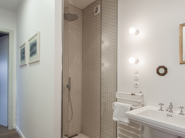 Kompletní přestavba a interiér bytu v posledním podlaží funkcionalistického domu v Praze, kde interiér volně pokračuje skrz prostornou terasu a kombinuje příjemně drobné měřítko s velkorysými výhledy na město...