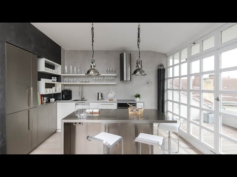 Obývací pokoj je součástí otevřeného obytného prostoru. Sofa je umístěna do niky pod šikminu, vysoká komínová stěna je osazena krbem na bio-líh.