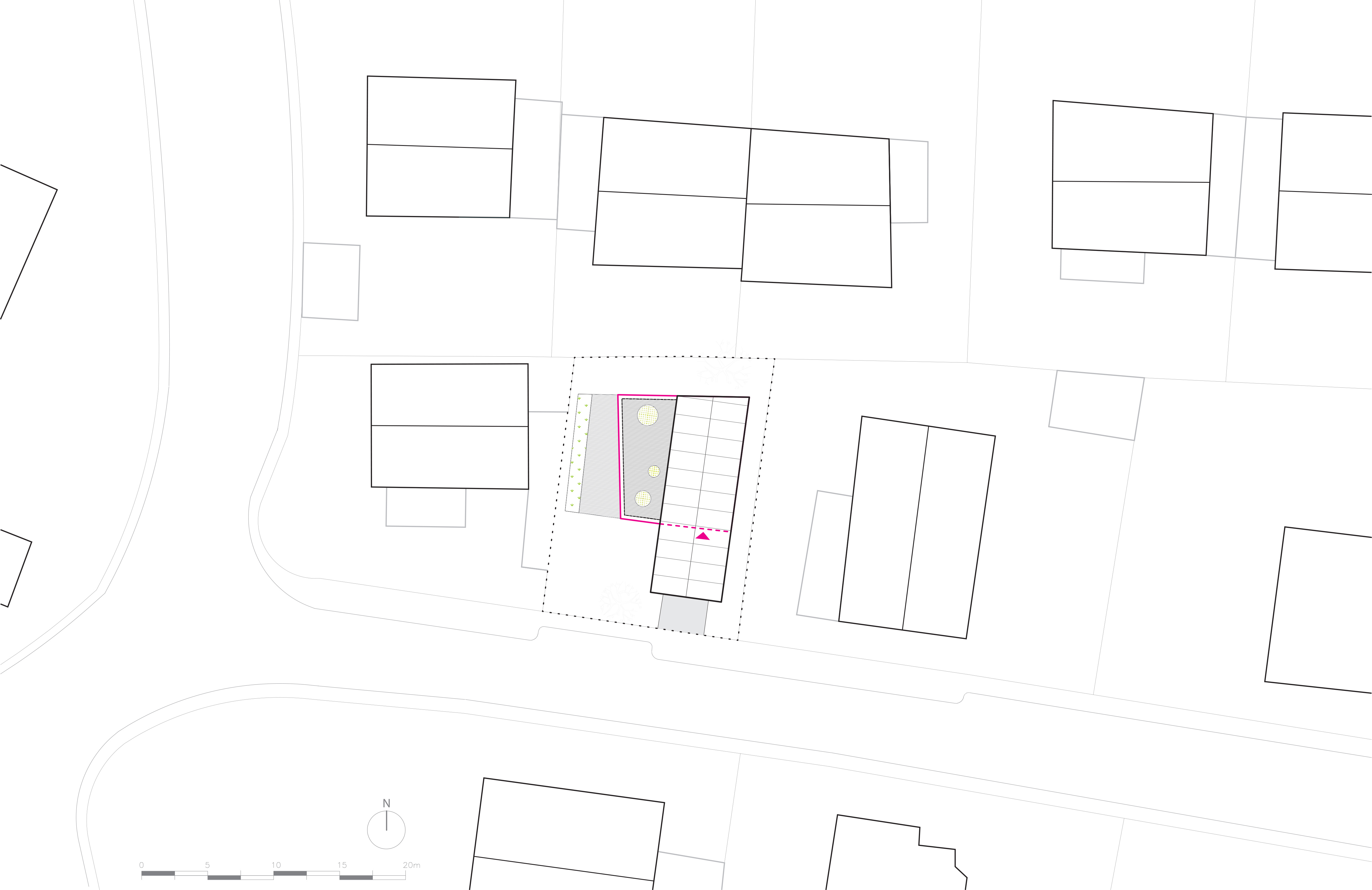 Pozemek o malé rozloze se nachází na mírném západním svahu, v příměstské části hlavního města. Dopravní dostupnost přímo do centra je velmi dobrá. Okolní zástavba je smíšeného charakteru.