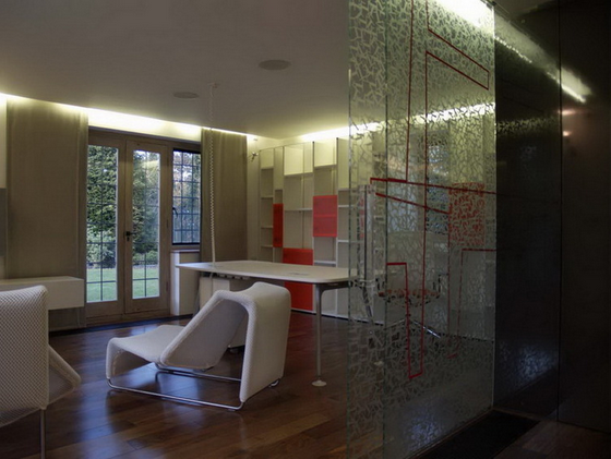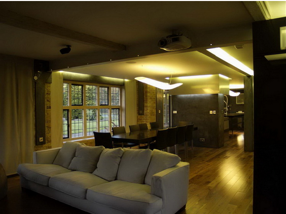 V konzervativním britském prostředí nejsou možné razantnější přestavby - ty se odehrávají pouze uvnitř domu. Výsledkem je komplikovaná prostorová struktura různých stavebních překladů a podpor, kterým bylo třeba vymezit v otevřeném prostoru logickou pozici. Místo skutečně otevřené dispozice tedy vznikly množství průhledů, které naznačují, že prostor dál plyne.