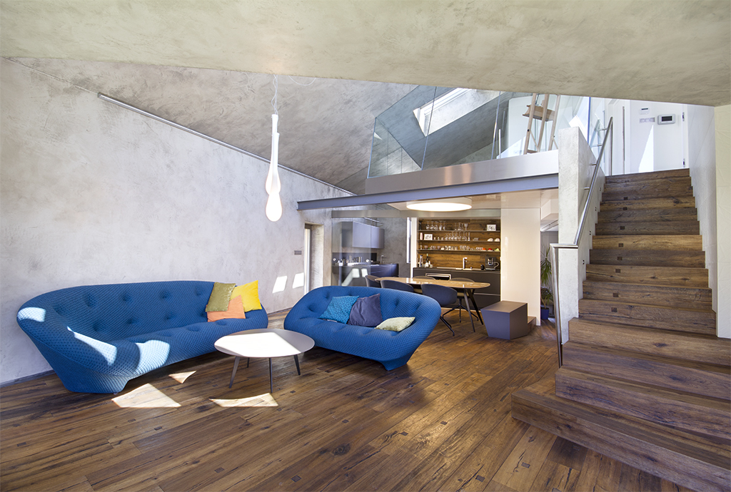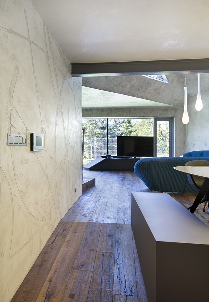 Atypický interiér i žádá atypické řešení. V tomto případě správně padla volba na imitaci betonu od společnosti Němec, která celému interiéru dodává industriální, ale přitom stále elegantní pocit.
