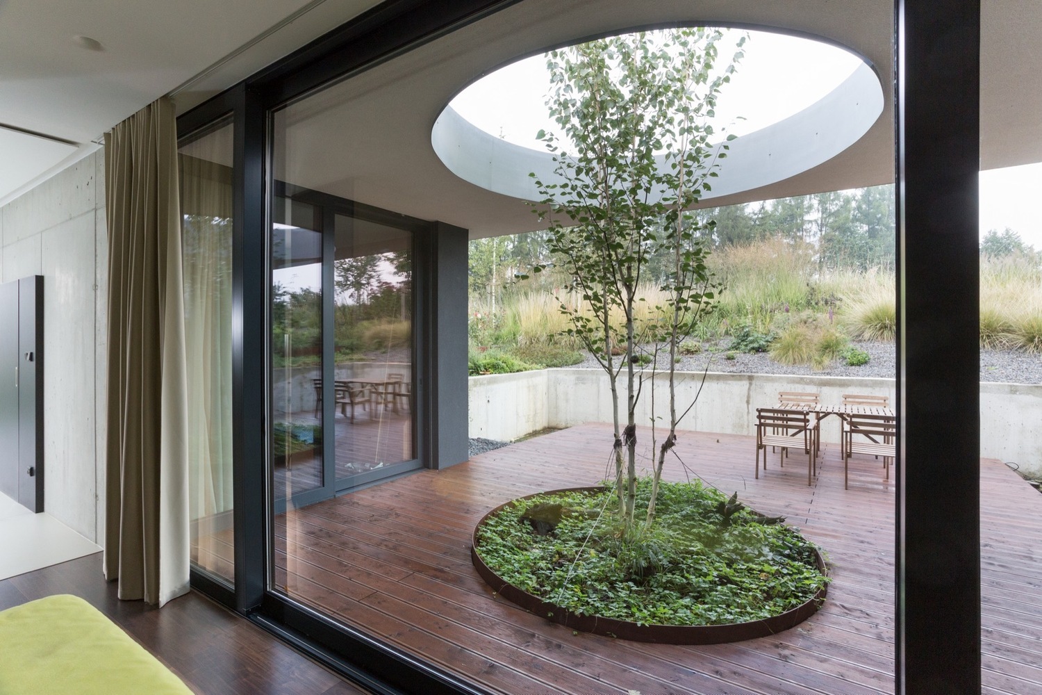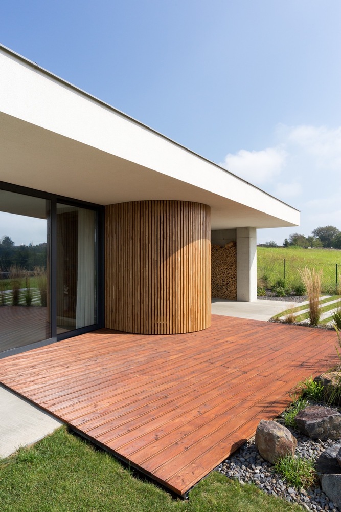 Rodinný dům, který je co nejvíce otevřený směrem na panorama Beskyd a slouží jako domov pro manželský pár s odrostlými dětmi.