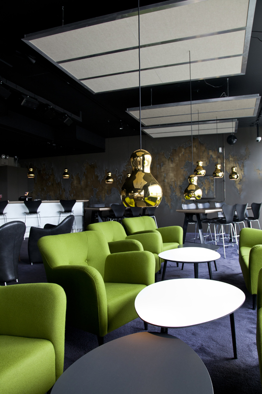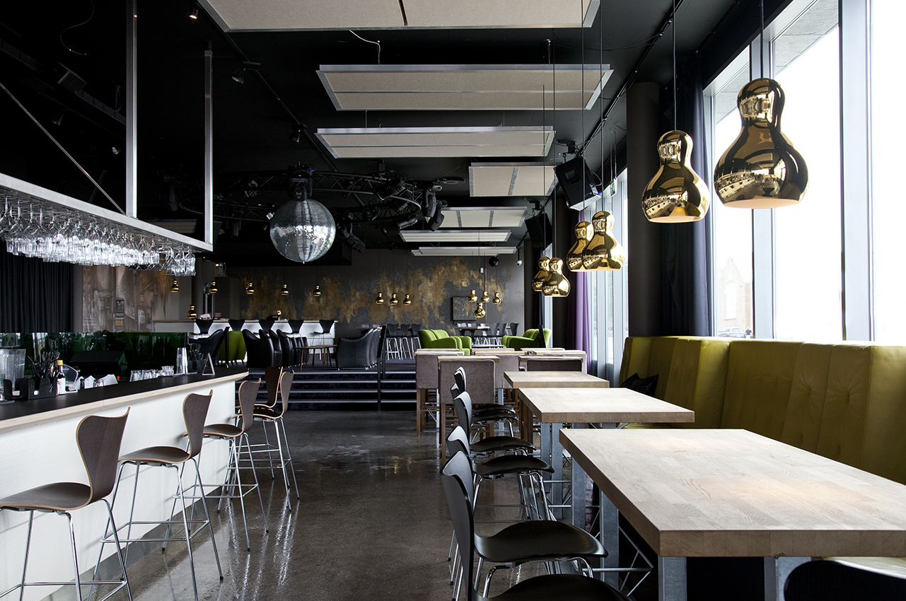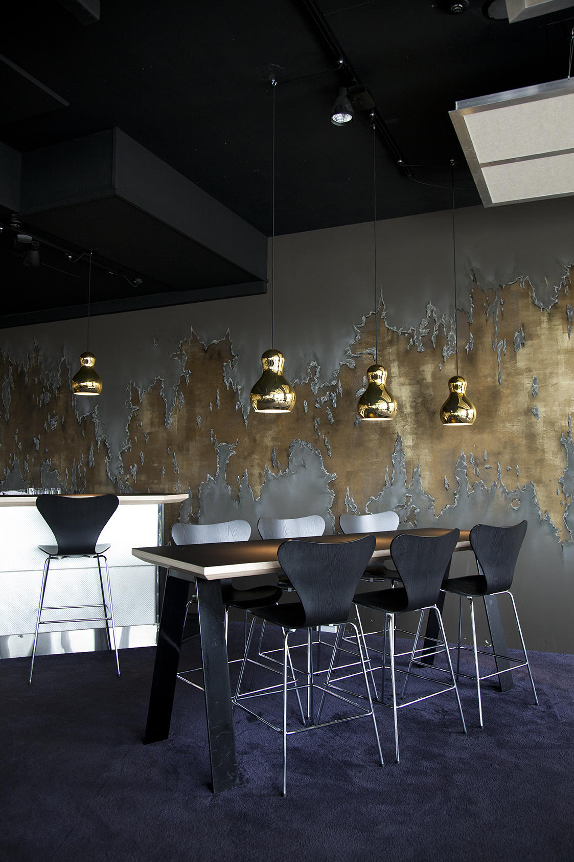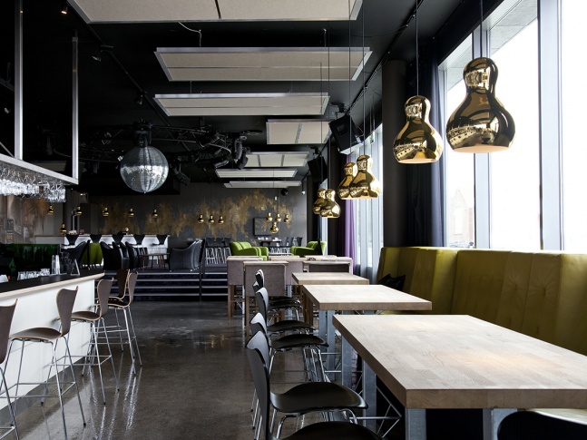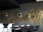 Závěsné svítidlo Calabash od firmy Lightyears bylo vybráno díky tomu, že skvěle zapadlo do konceptu interiéru baru Soho v New Yorském stylu. Osvětlení Calabash od Lightyears zde bylo zvoleno ve zlaté barvě, je však dostupné v mnoha barevných variacích.