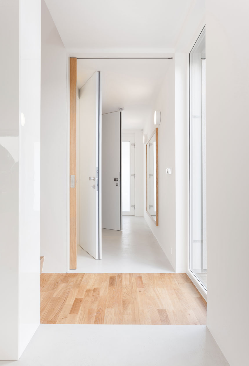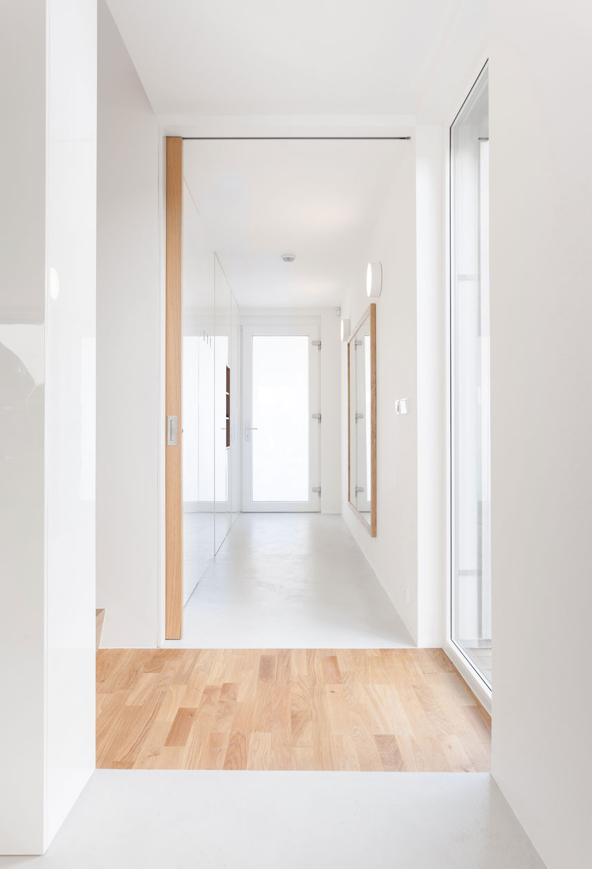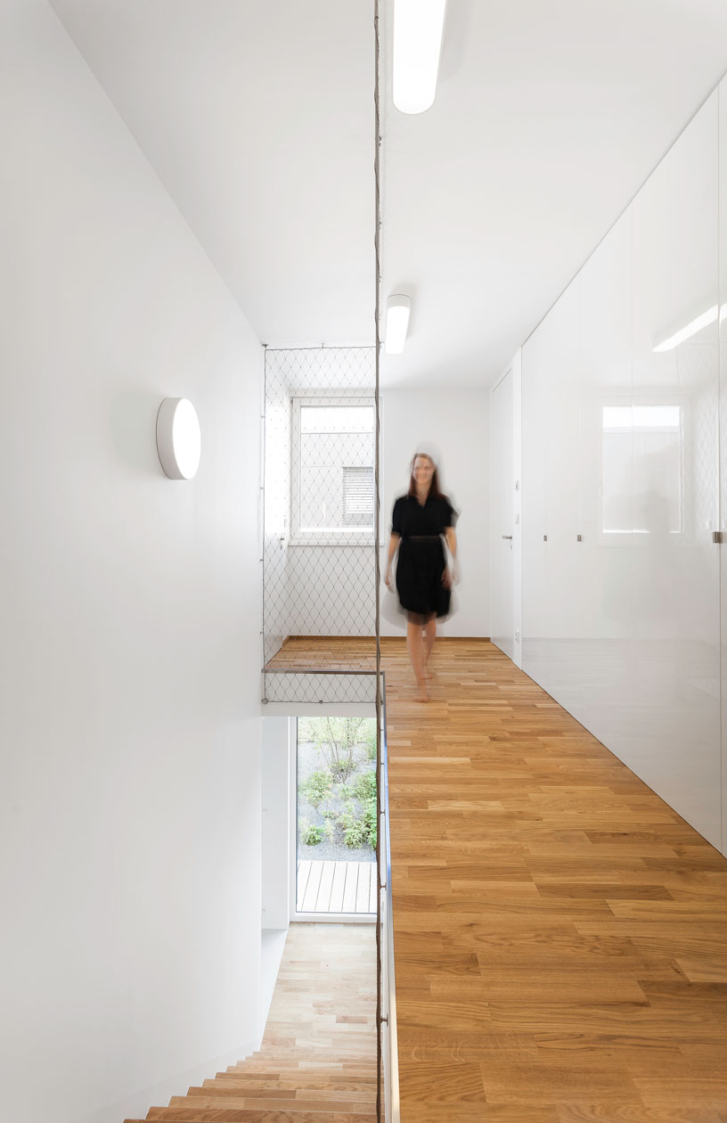 Strohá geometrie a bílá barva v kombinaci s přírodním olejovaným dubem a antracitově šedými plochami jako podklad pro barevné hrátky v prostoru. Zahrada jako nekonečně se měnící obraz. Interier pro mladý pár, kterému záleží na každém detailu. Vytvořili jsme jakousi neutrální kulisu, kterou lze téměř libovolně doplňovat prvky dle vkusu majitelů.