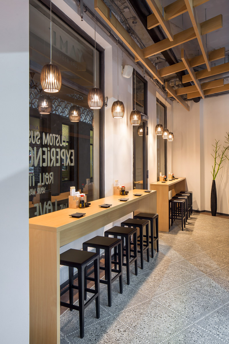 Návrh a realizace interiéru sushi restaurace Yami v pasáži Dlouhá.
