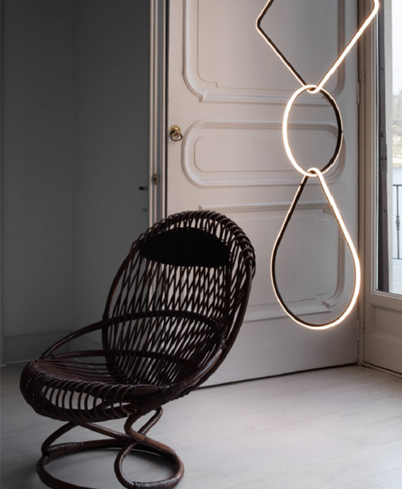 Libovolně nastavitelné svítidlo z rozptýleným světlem. Každou jeho část je možné připojit ke zvláštnímu napájecímu kabelu a může tak být zavěšeno jednotlivě nebo v kombinaci různých tvarů.