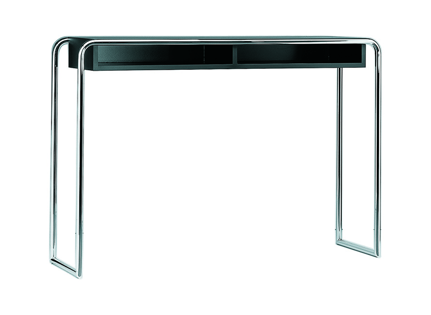 Elegantní konzolový stolek B 108 s úložným prostorem. Poprvé byl představen roku 1930/1931 v Thonet katalogu. Vynálezce ocelových trubek byl s Thonetem také úzce spjat. Stůl se bude vyjímat nejen v obývací a jídelní části domu, ale i ve vstupním prostoru, kanceláři a lze jej využít i jako toaletní stolek. Rám je z chromovaných ocelových trubek s dřevěnými prvky lakovanými v různých odstínech.