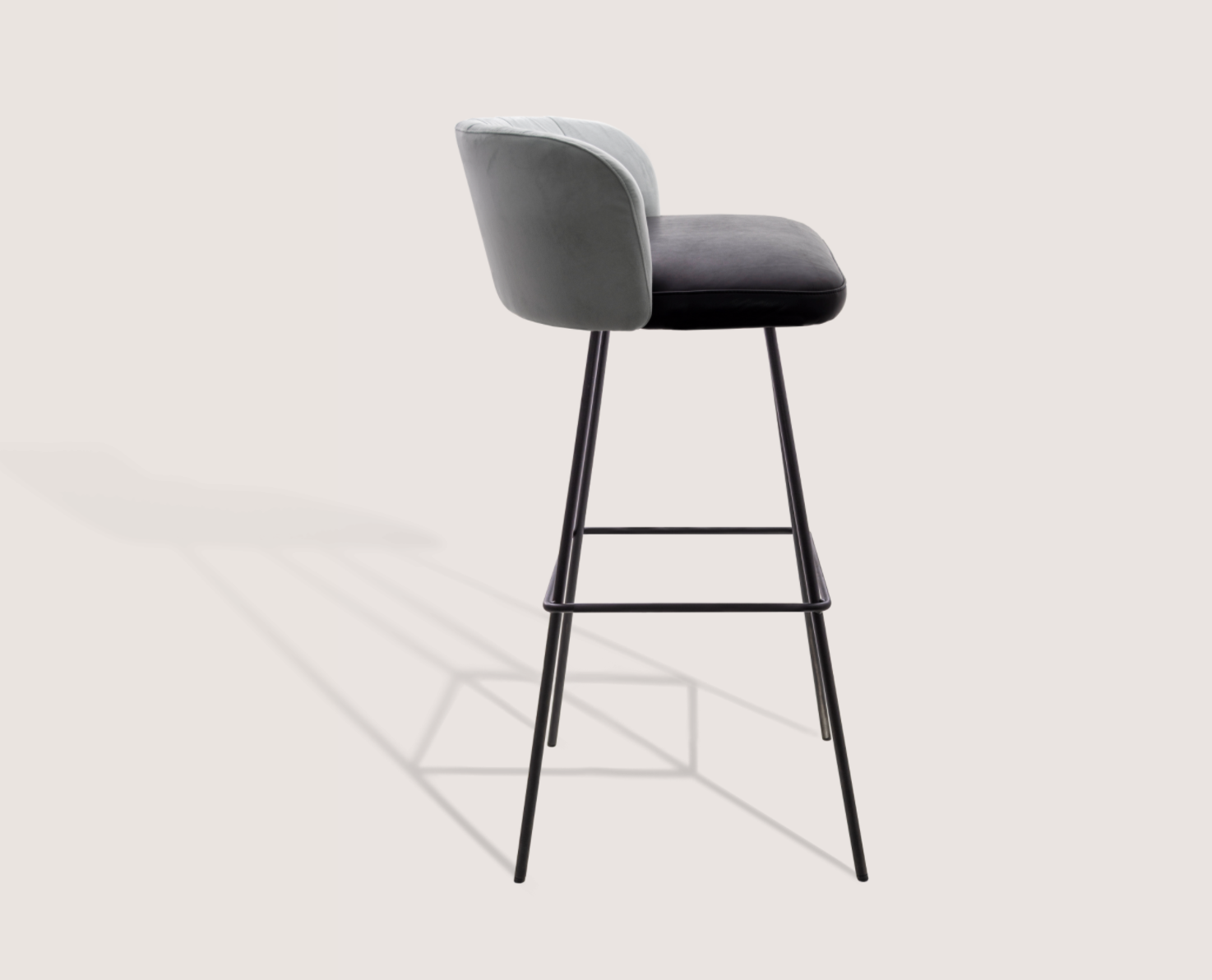 Čalouněná barová stolička Gaia Casual s připoutaným a polstrovaným sedákem. Pohodlné opěradlo s pružnými, oddělenými čalouněnými zadními prvky z tvarovaného dřeva s pěnou. S plastovými nebo plstěnými kluzáky.