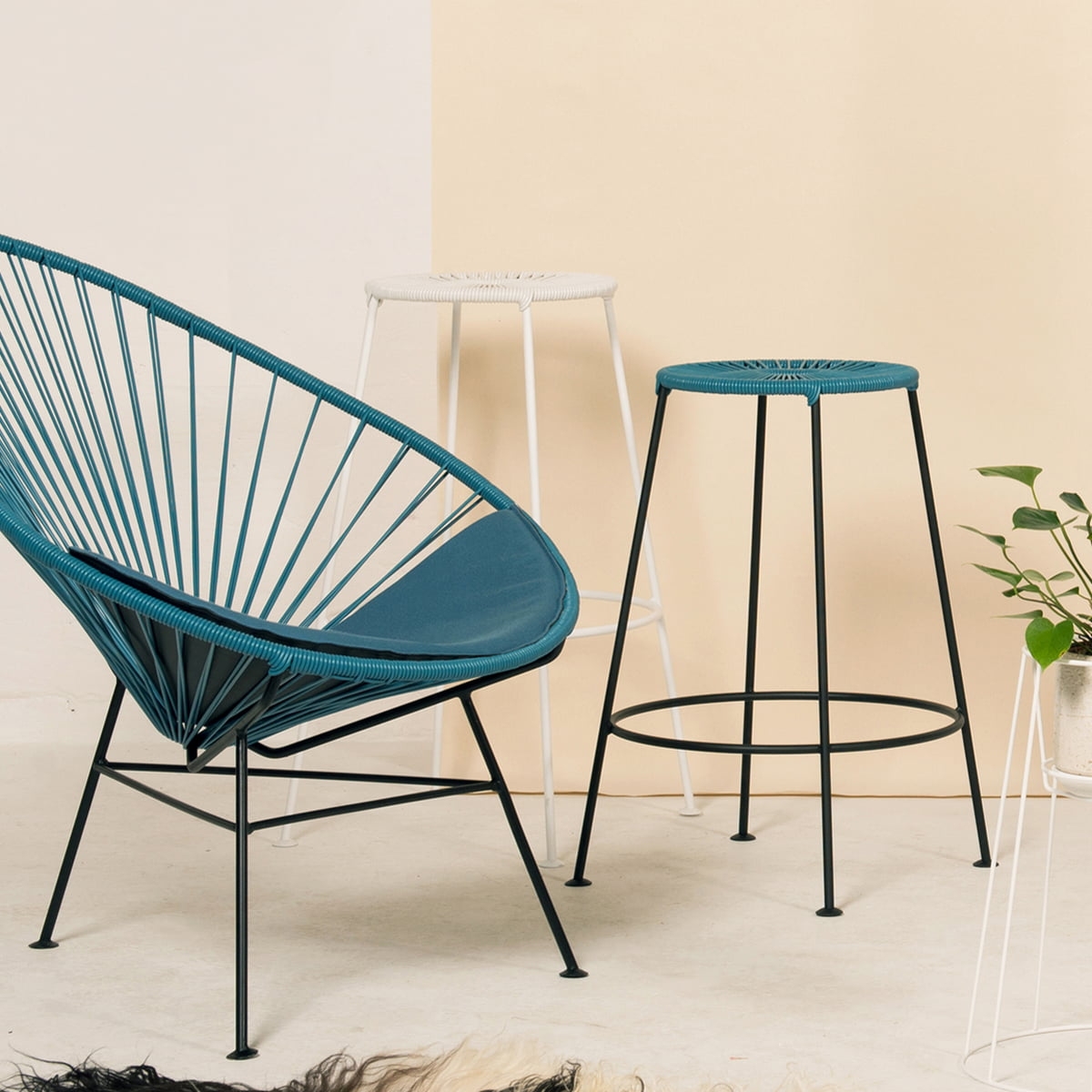 Barová židle Acapulco, kterou vytvořila firma Ok Desing, je součástí série Acapulco. Skládá se z kovového rámu a PVC provazu, které dokazují perfektní rovnováhu mezi minimalismem a bohatostí detailů.Vhodné pro venkovní použití.