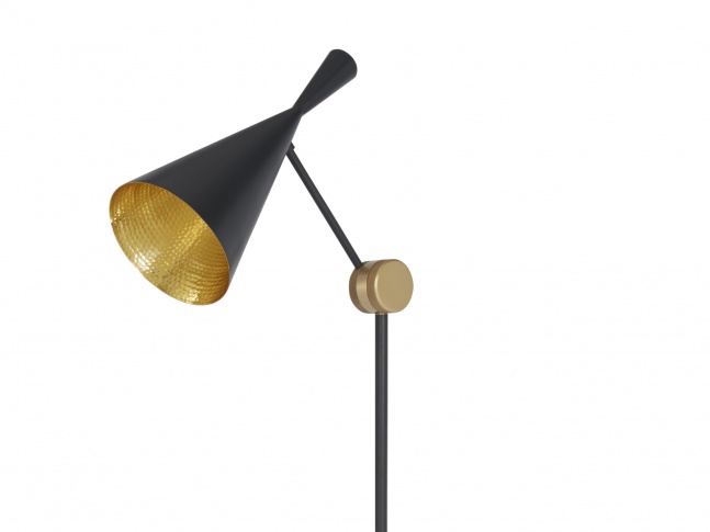 Lampa Tom Dixon Beat floor je jednoduchá a přesto moderní a elegantní. K dostání je v černém i bronzovém provedení.