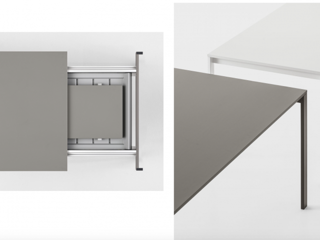 be — Easy je kolekce vnitřních pevných a roztažitelných stolů s minimalistickou přitažlivostí, s topem v Fenix-NTM® dostupným v různých barvách. NTM znamená NanoTech Matt, neboli antireflexní matný efekt, který dodává povrchu tohoto materiálu jeho hřejivou estetickou a měkkou hmatovou přitažlivost a vysokou odolnost proti poškrábání, oděru, teplu, skvrnám.