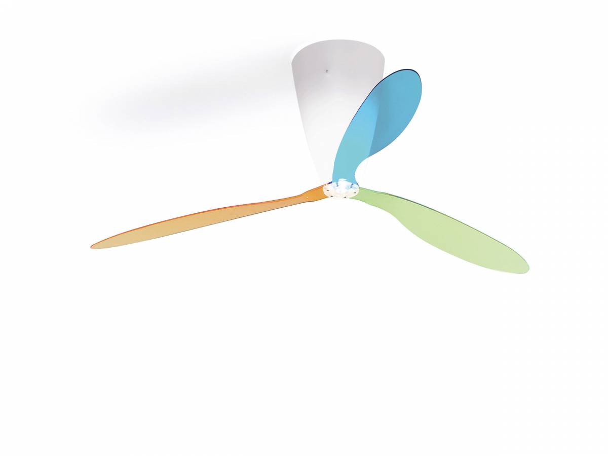 Lehká váha a zcela zásadní design. Blow elegantně a tiše proplouvá vzduchem. Otáčení barevných nebo průhledných metakrylátových listů nezasahuje do světla v místnosti, naopak je zajímavě podporuje.