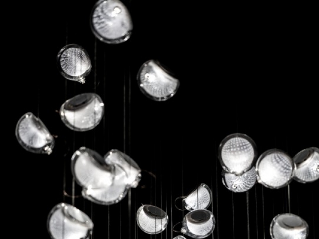 Světlo 76 je vyrobeno díky vakuu mezi dvěmi vrstvami bílé a čiré skloviny s měděnou síťkou. Vzniklý podtlak způsobí, že se bílá vrstva vytáhne přes vloženou síť a vytvoří skvrnitý charakter světla.