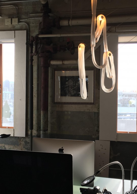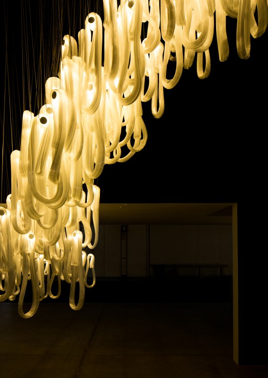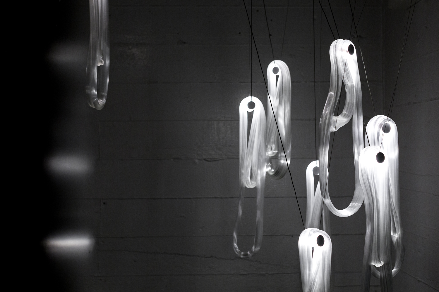 Při výrobě tohoto světelného objektu slouží sycená voda k zachycení vzduchu v přehřáté skleněné matrici. Sklo je pak ve svislém směru taženo a skládáno na sebe. Když se sklo ochlazuje, pohybem skládání se vzduchové bubliny roztahují do mikrovláken a to následně navozuje pocit, že je objekt perleťový.