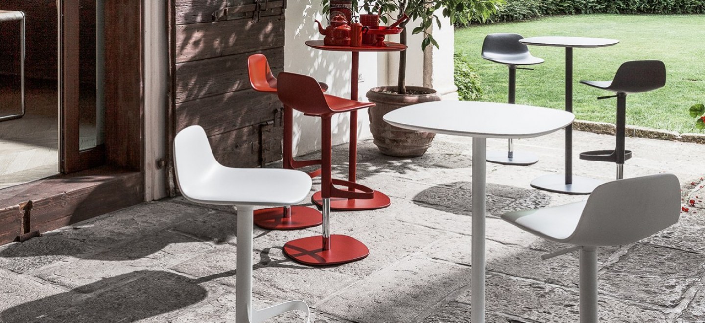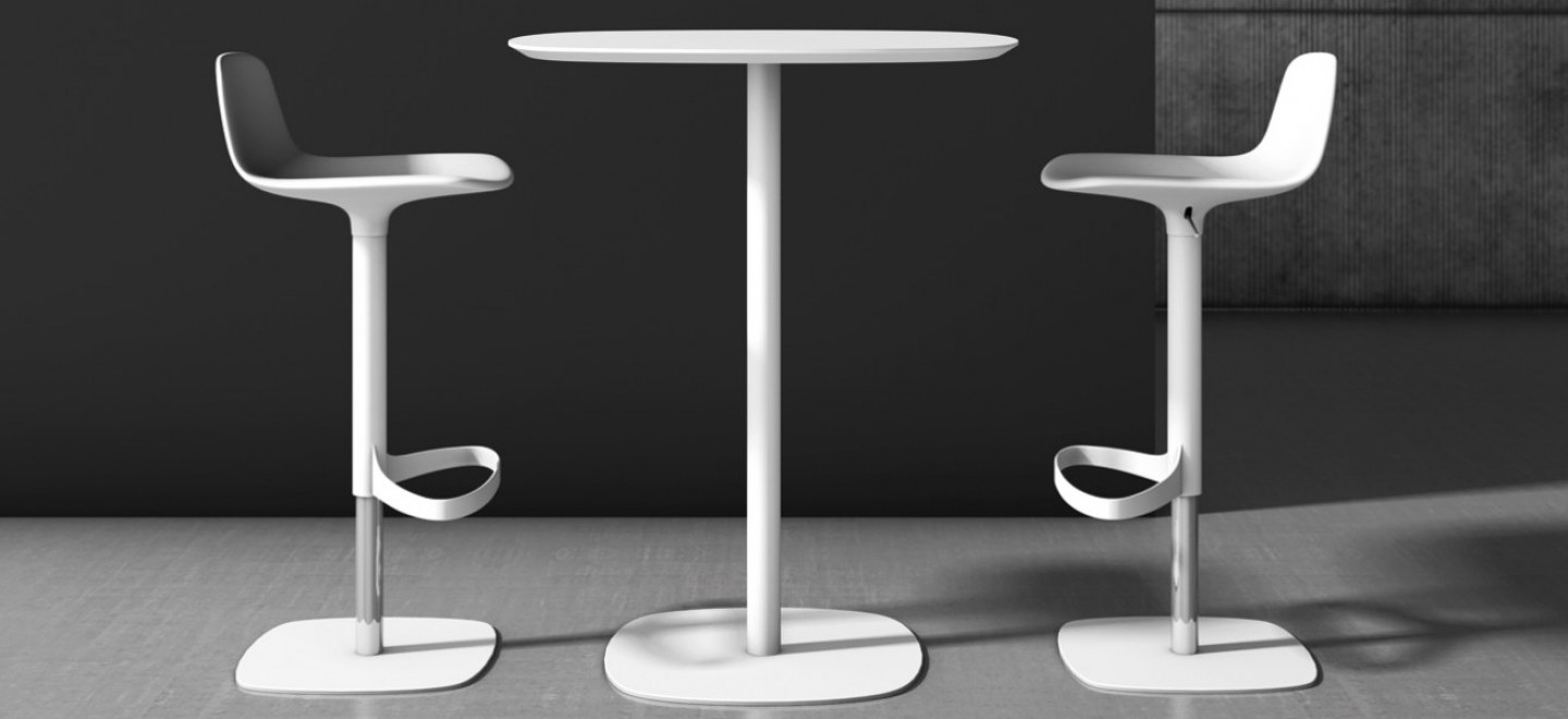 Stolek Clyde a barová židle Bonnie – perfektní pár. Oblé, ale štíhlé tvary jsou vysoce moderní, záleží jen na barevném provedení, jestli budou Bonnie a Clyde působit nenápadně, nebo se stanou výrazným bodem interiéru.