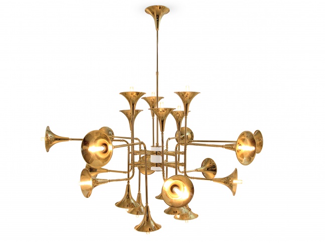 Svítidlo připomínající dechové nástroje je vyroben z mosazi. Svítidlo se vyrábí ve třech tvarových provedeních.