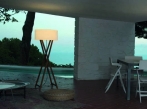 Hlavním záměrem při vytvoření venkovní verze stojací lampy Cala bylo přenést příjemnou domácí atmosféru také na terasu a venkovních prostor. Uzavřená vrchní část svítidla je vyrobená z polykarbonátu, s odnímatelnou textilií z umělých vláken, která je snadno čistitelná. Konstrukce svítidla splňuje krytí IP 65. Designér Joan Gaspar pro Marset, 2012.