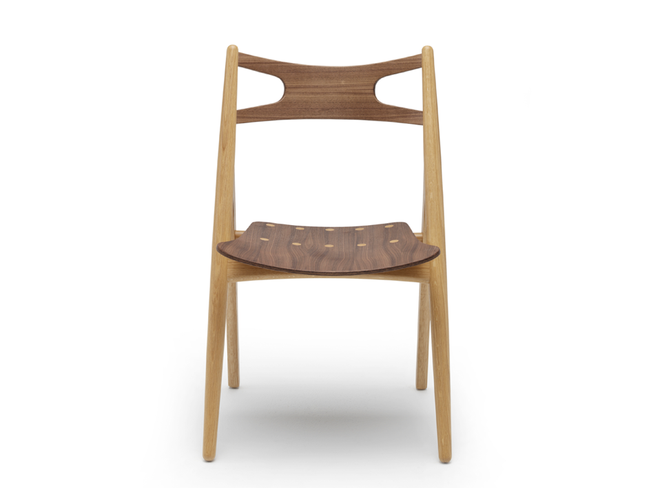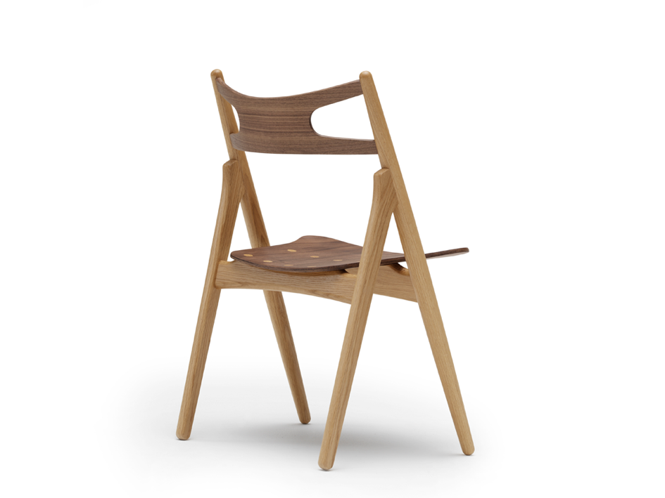 Židle CH29 je úzce spojena s židlí CH28 a je k dostání také ve stejné verzi, která kombinuje záda a sedák z ořechu a nohy z dubového masivu.