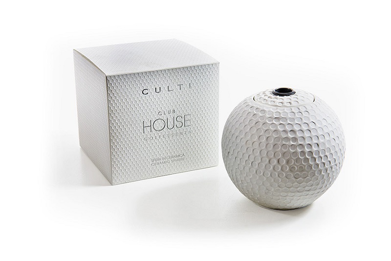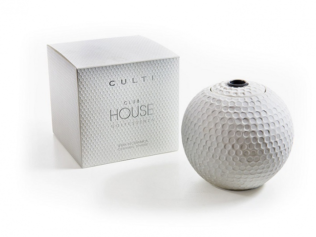 Keramická nádoba na pokojovou vůni Culti perfektně zapadne do každého interiéru. Má vzhled i tvar golfového míčku. Je zabalena do dárkové papírové krabičky s luxusním designem. Po naplnění slouží nádoba jako difuzér. Lze ji naplnit až 100 ml vůně.