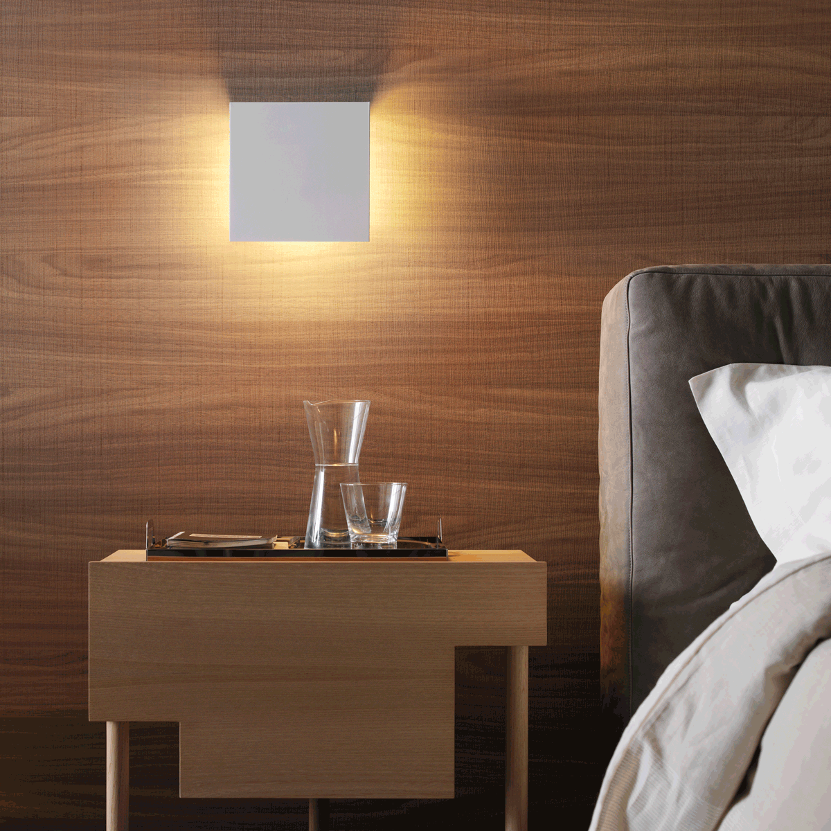 Corrubedo je nástěnná lampa s geometrickými liniemi bez ozdůbek, kterou lze instalovat tak, aby světelný zdroj směřoval nahoru nebo dolů v závislosti na tom, kde je požadovaný paprsek světla. Čelní stěna je k dispozici v bílé barvě nebo se zrcadlovým povrchem.