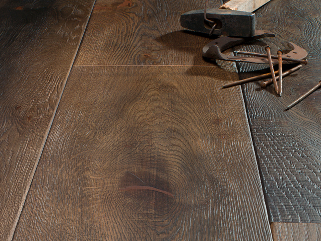 Dřevěná podlaha z kolekce "sawn and planed" odkazuje na minulost. Podlahy s rustikálním a působivým vzhledem, které Bassano Parquet vytváří pomocí barevných olejů a také přirozenou reakcí dřeva dodávají prostorům autentický vzhled.
