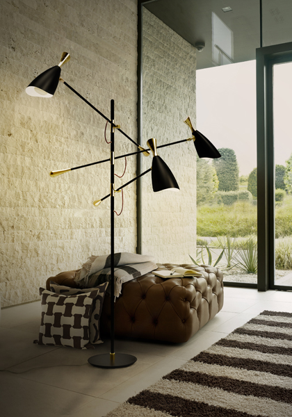Designové svítidlo z kolekce Delightfull. Duke podle Duka Elligtona je elegantní svítidlo s černými stínítky a mosaznými detaily.