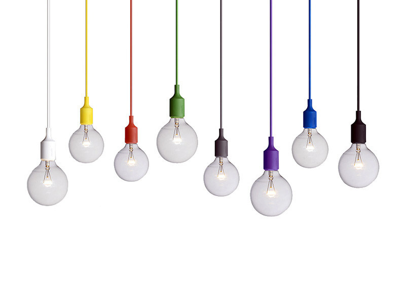 Závěsné svítidlo E27 vytváří jednoduchý, ale silný objekt. Ten představuje holá žárovka zasazená do objímky kabelu. Lze ji pomocí přídavné krytky Multi Kit seskupit do shluku několika kusů, popustit uzdu fantazii a vytvořit tak moderní a originální svítidlo. Je dodávána s žárovkou a 4 m kabelem. Stropní krytka není součástí balení. K dispozici ve 12 odlišných barvách.