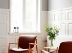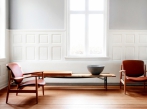 Elegantní křeslo navržené roku 1956. Rám je vyroben z masivního dřeva. Na výběr je mezi bukem, černě lakovaným bukem, dubem, černě lakovaným dubem nebo uzeným dubem.