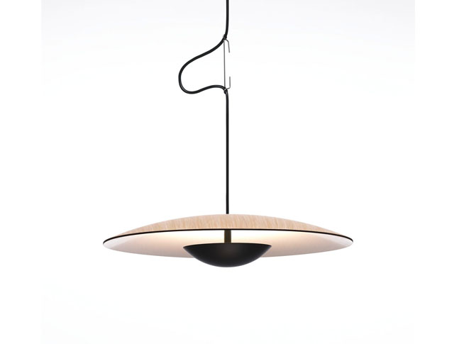 Kolekce svítidel Ginger je vyrobena z vrstev dřeva a papíru lisovaných vysokým tlakem. Výsledkem je stínidlo tenké pouhé 4 mm, které je z vnitřní strany bílé, aby byla zajištěna maximální odraznost světla. Záleží pouze na vás, zda si na vnější stranu zvolíte dubové dřevo, nebo exotické dřevo wenge. Svítidlo je vybaveno LED zdrojem. Vyrobeno pro Marset