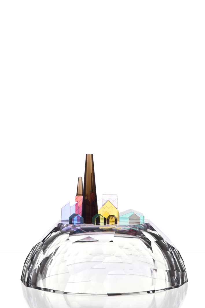 Dekorativní objekt ze skla představuje minimalistickou a poetickou krajinu vytvořenou z ručně broušeného skla a barevných prvků z rytého skla. Tyto základní stavební kameny Vám umožní vytvářet, skládat a měnit svůj vlastní symbolický svět. Hlavní kupole je ručně tvarována. Set obsahuje 17 kusů barev BERIL zelená, ALEX fialová, ROSALIN růžová, ENDOR žlutá a AQUAMARINE modrá. Hmotnost je 3,5 kg.