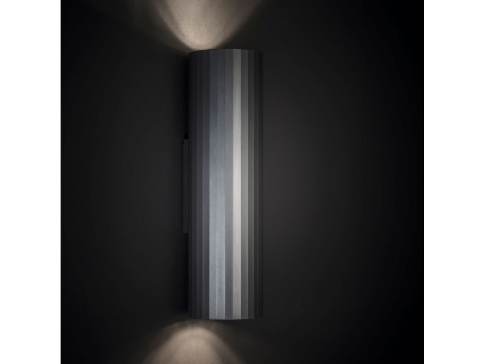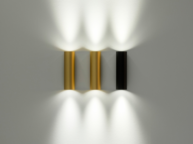 Nástěnná svítidla z kolekce HEDRA jsou typická fazetovými hranami, v jejichž ploškách se odráží ambientní světlo z interiéru. Nové typy svítidel přicházejí vedle klasické bílé a černé barvy také ve zlaté champagne a černém bronzu.