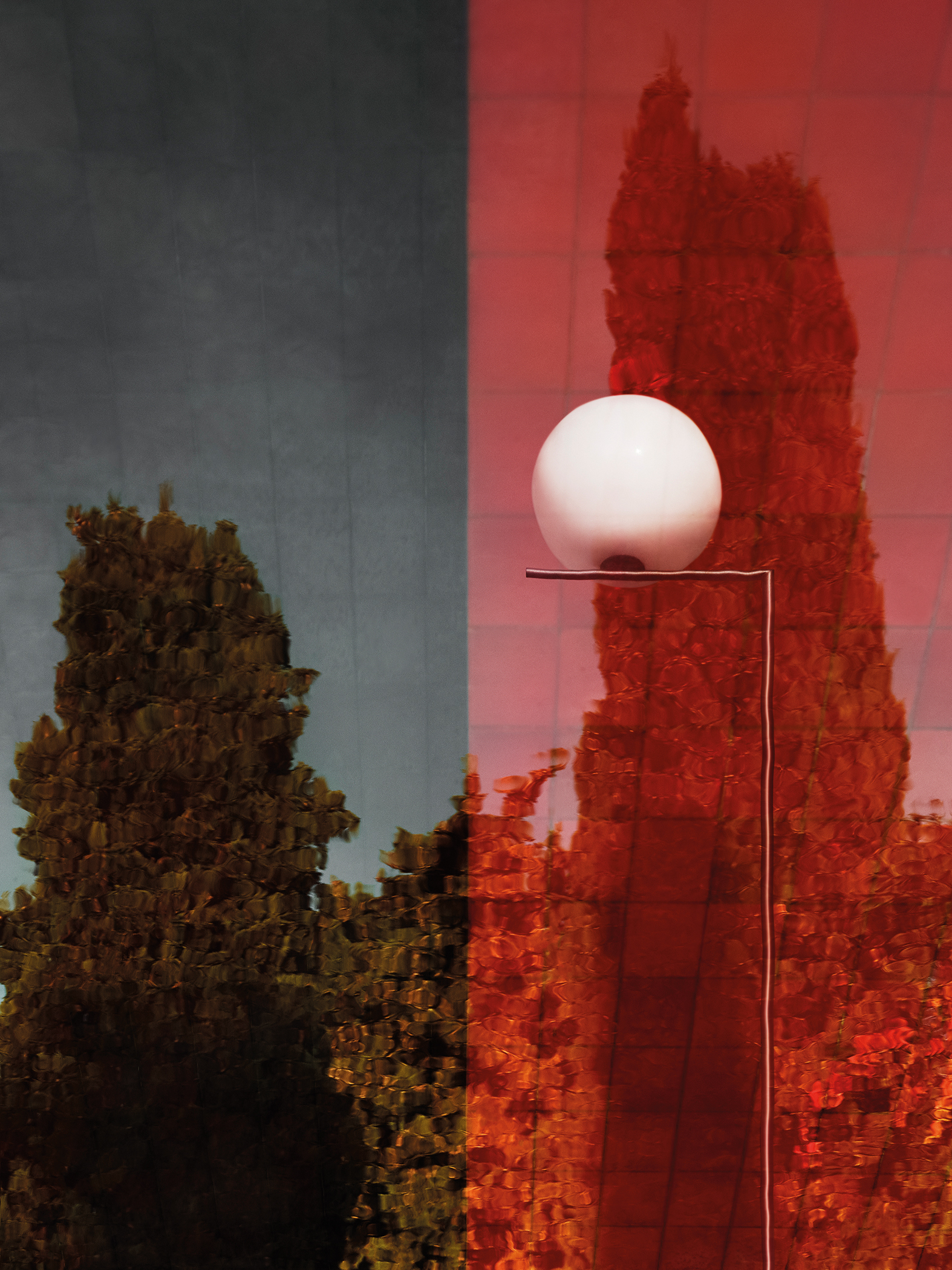 Stojací venkovní lampa ukazující dokonalost rovnováhy.