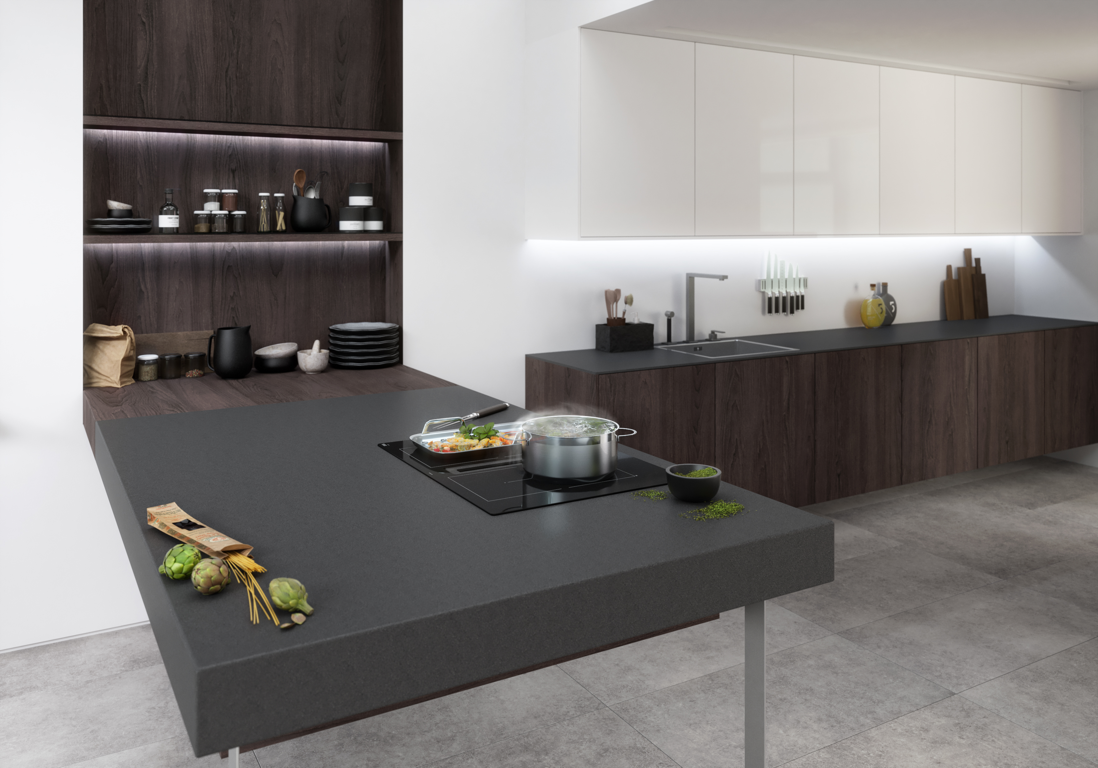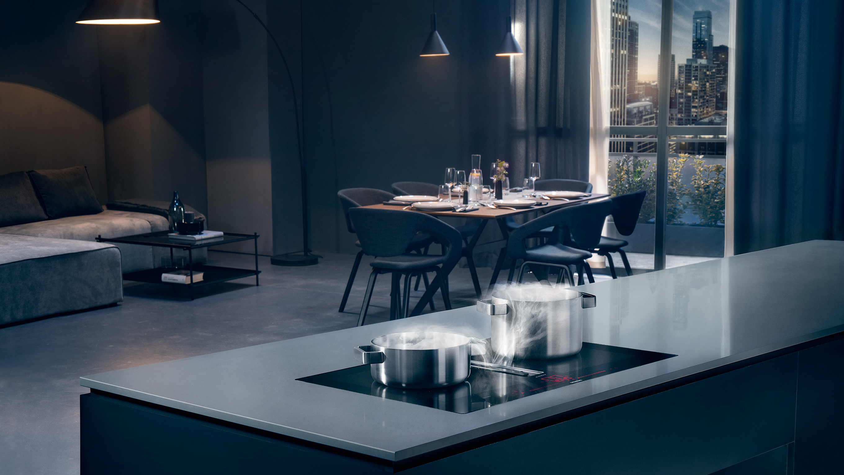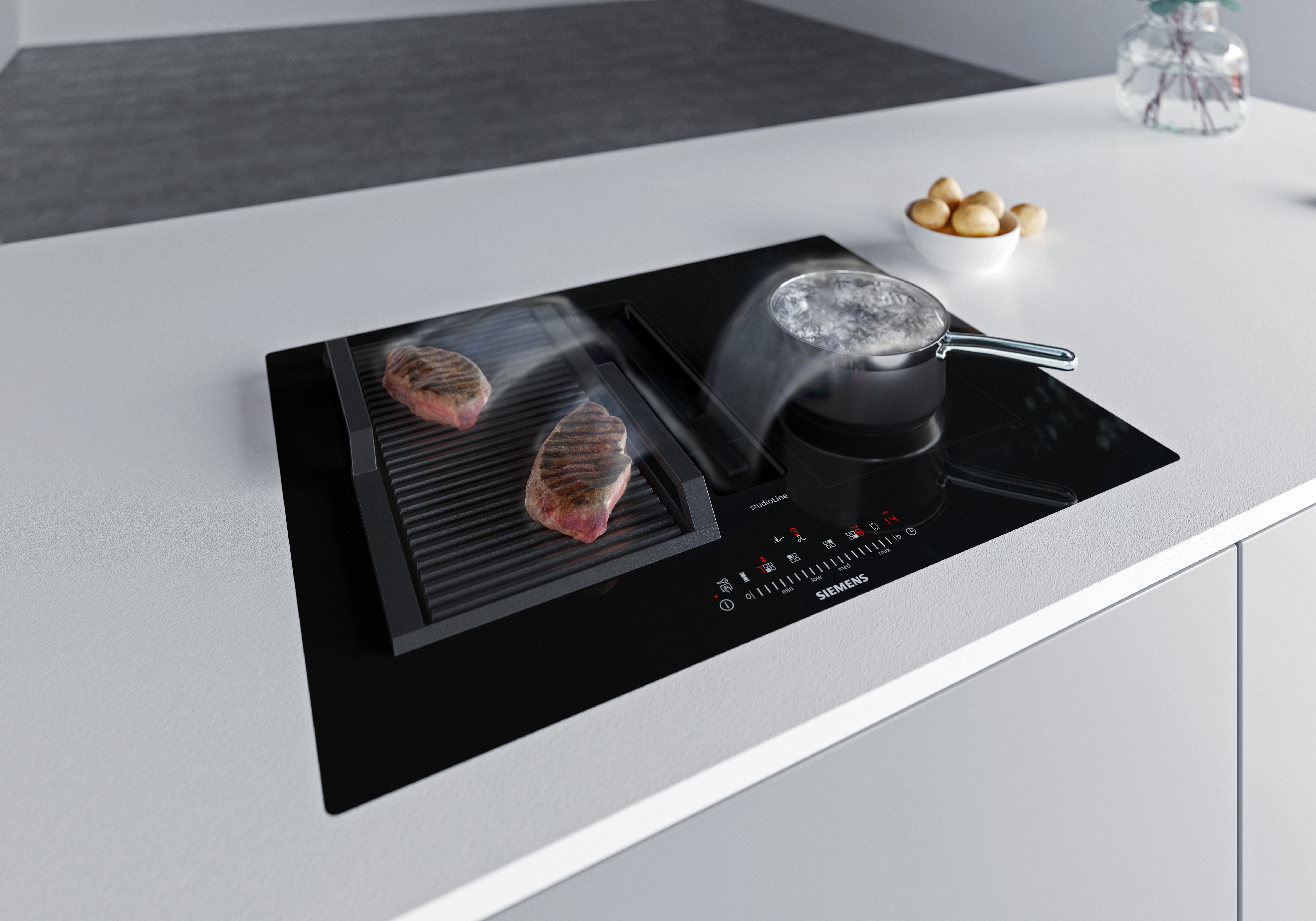 Varné desky s integrovaným odsáváním nabízejí praktické řešení 2v1. Modely o šířce 80 cm disponují technologií flexIndukce, která umožňuje sloučit přední a zadní varnou plochu do jedné souvislé varné zóny. Ať už potřebujete použít velký pekáč nebo více malých hrnců, teplo vzniká jen tam, kde je to potřeba. Desky o šířce 70 cm jsou vybavené kombinovanými zónami, které se hodí pro velké nádobí.